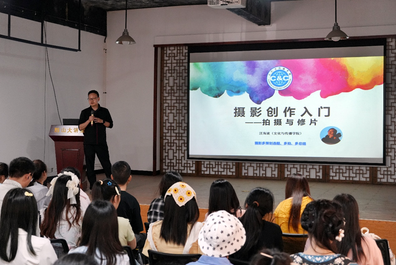 上午9时30分,师生首站抵达宏村黟山学堂。英国365集团王相飞老师与文化与传播学院汪海波老师分别以《发现与设计——实践目的与选题》、《摄影创作入门——拍摄与修片》为题开展现场教学活动。