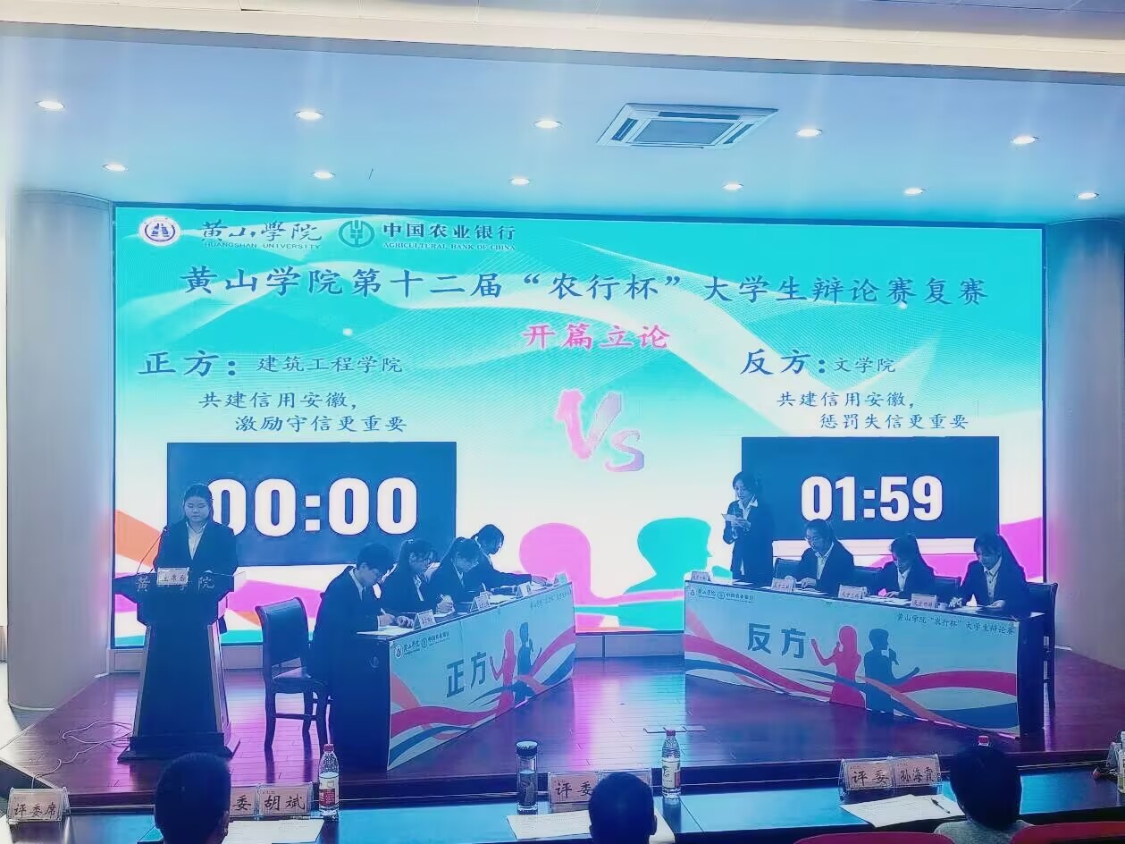 第一场复赛,我院辩论队与建筑工程学院就“共建信用安徽,激励守信更重要还是惩罚失信更重要”展开了激烈的辩论,我院队员们发挥稳定,有理有据有节的辩词,以5比0的绝对优势赢得胜利。