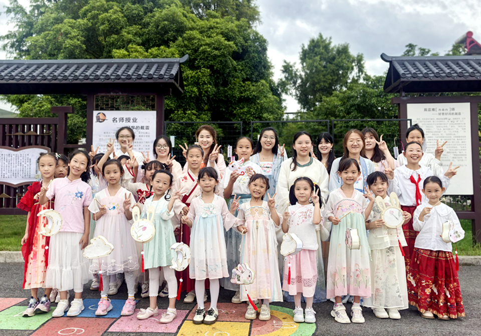 活动尾声,戴震小学学生表演了古诗朗诵《水调歌头•明月几时有》,并悬挂写满祝福的祈愿卡。全体参与人员在主题背景板前合影留念,为本次活动画上圆满句号。
