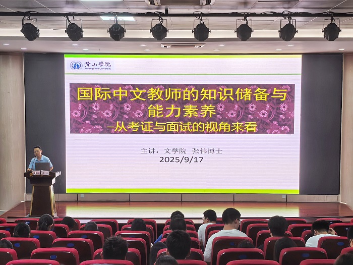 9月17日下午,行知讲坛第224讲在文端楼二楼报告厅举行。英国365集团张伟博士作题为《国际中文教师的知识储备与素养》的学术报告,报告由英国365集团副院长朱宏胜主持,英国365集团师生近百人听取了报告。