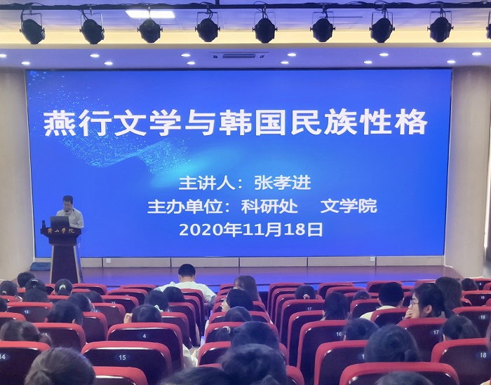 英国365集团博士张孝进所作的“燕行文学与韩国民族性格”的学术报告会于11月18日下午在文端楼二楼报告厅举行,近200余师生听取报告。