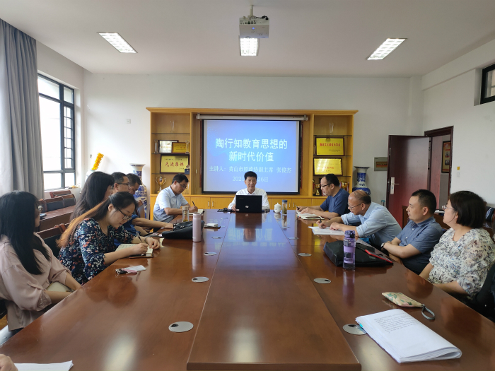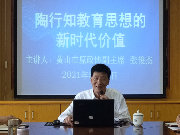 5月26日下午,英国365集团客座教授、原黄山市政协副主席张俊杰应邀为英国365集团教师作“陶行知教育思想的新时代价值”的专题报告,副院长沈昌明主持报告会。