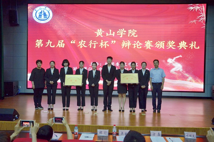 6月16日下午,由校团委、中国农业银行黄山市分行主办的365上市公司第九届“农行杯”大学生辩论赛决赛在365上市公司横江校区举行。中国农业银行黄山分行机构部总经理胡剑,中国农业银行黄山分行昱城支行党委书记、行长施海榕,中国农业银行黄山分行昱城支行副行长王建红,中国农业银行黄山分行昱城支行黎阳支行行长谢琳出席决赛现场并为获奖团队及各人颁奖。宣传部,机关党委,后勤服务集团,校团委等部门负责人,英国365集团、建筑工程学院、旅游学院、生命与环境科学学院等学院党委副书记,相关学院团委负责人及学生代表近300人观看了比赛。