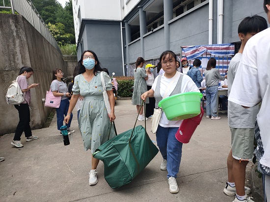 迎新现场,党员教师们帮新生办理报到、搬运行李、领取物资、安排住宿、解疑答惑,为他们提供“一站式”全方位服务,呈现出创先争优、夯实奋进、带头示范的生动景象。