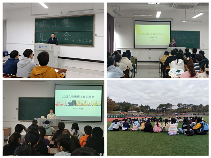 21中文班新生班主任杨辉老师以“为什么要读书”话题展开,结合生活现象,向同学们展示学习的力量和价值。教导同学们要努力学好专业知识,做好学习规划,不断开阔自己的视野。21汉教班新生班主任芦洁媛老师则从自身求学经历帮助同学们要制定好明确的学习和生活目标,更快的适应大学生活,对未来要充满希望和信心,勇敢的迎接各种挑战。20汉教班班主任朱丽娟老师在率水校区第二田径场开展了一次别开生面的班主任见面会,拉近了学生与班主任的距离,鼓励同学们应做好学习规划,摆脱迷茫,让大学生活更加丰富多彩。其他各班级班主任也纷纷深入班级走近学生,详细了解学生目前的学习和生活情况,引导学生要学做人,学常识,学本领,努力成为有理想、有本领、有担当的新时代青年。