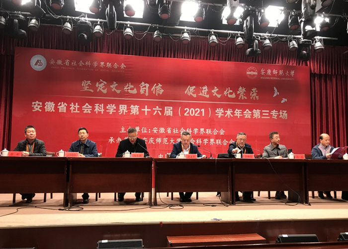 此次专场会议以“坚定文化自信,促进文化繁荣”为主题,由安徽省社会科学界联合会主办、安庆师范大学社会科学界联合会承办。内容涵盖安徽地域历史文化研究、优秀传统文化保护传承和发展、创新型文化强省建设、文化和科技深度融合发展等多个方面。会议采取线上线下两种方式同步进行,议程包括主旨报告和大会报告两阶段。