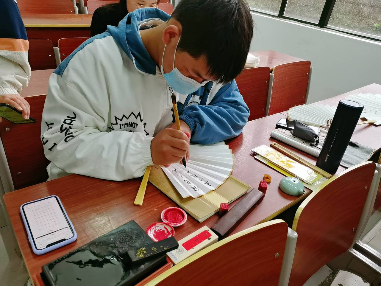 在春分时节,为让同学们了解中国传统节气知识并将其与诗句相结合,黄山文学社于2022年3月20日14:00-17:00在率水校区文端楼2206教室举办了“春有三言两语,我有几分风雅”--春分扇面题词活动。