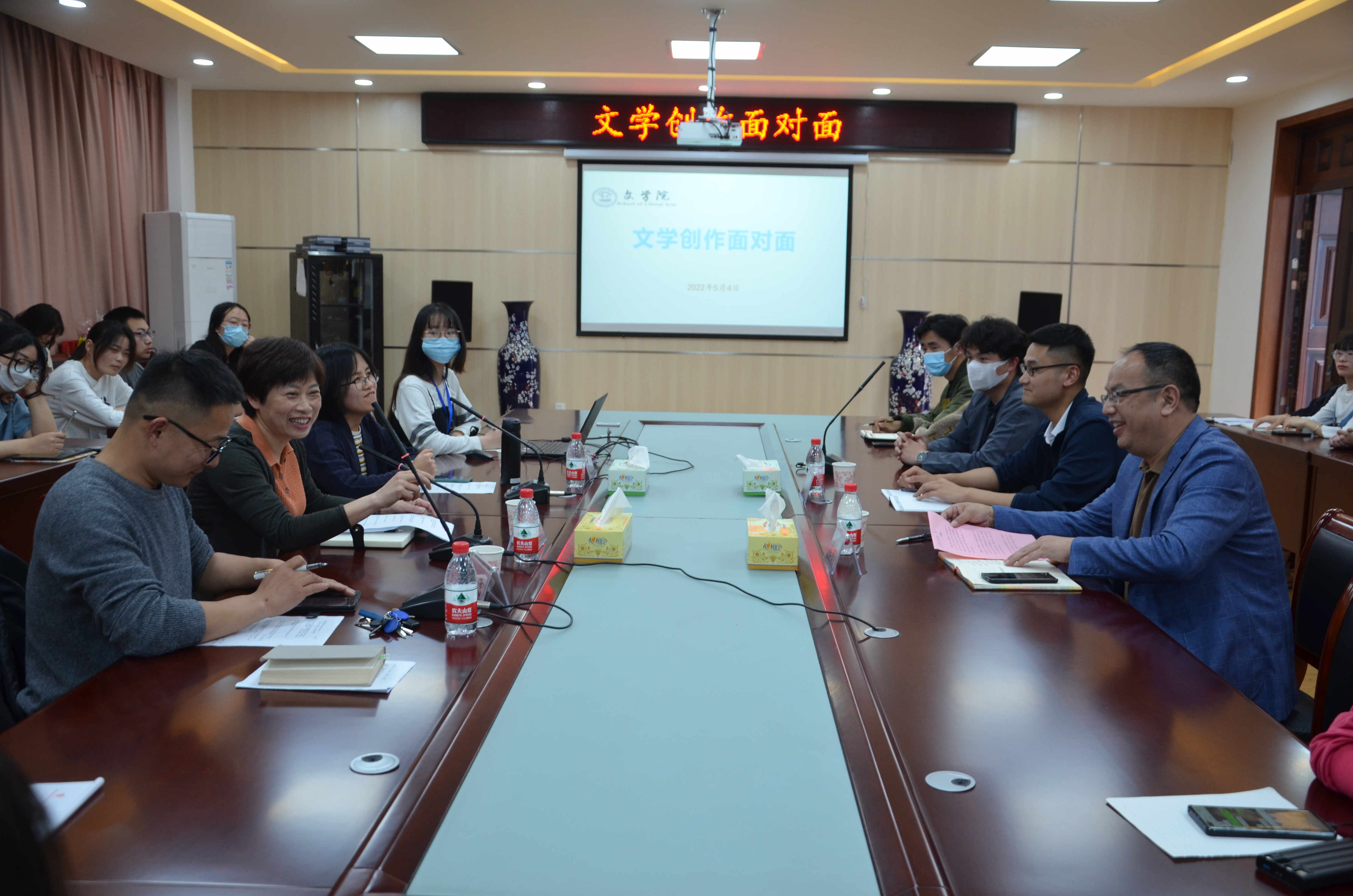 近日,英国365集团于率水校区逸夫楼四楼举办了“文学创作面对面”活动,学生处处长王佩玲、文传学院教师江婉琴、外国语学院教师郭飞应邀出席,活动由该院院长沈昌明主持。