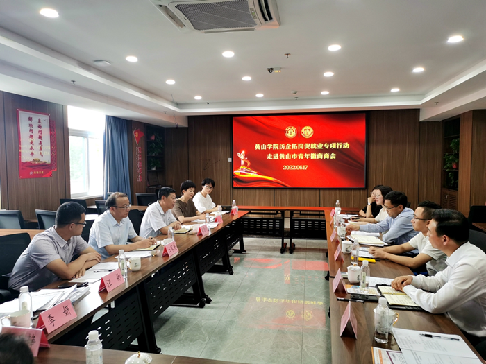 黄山祥龙实业集团有限公司、黄山彦丰文化传播有限公司、黄山风驰汽车销售服务有限公司、黄山南与北文化旅游有限公司和安徽徽格装饰设计有限公司企业代表相继发言,介绍了各自企业基本情况以及人才需求情况,双方就培养大学生的社会实践能力和更好地吸引毕业生服务当地企业等有关问题展开座谈交流。
