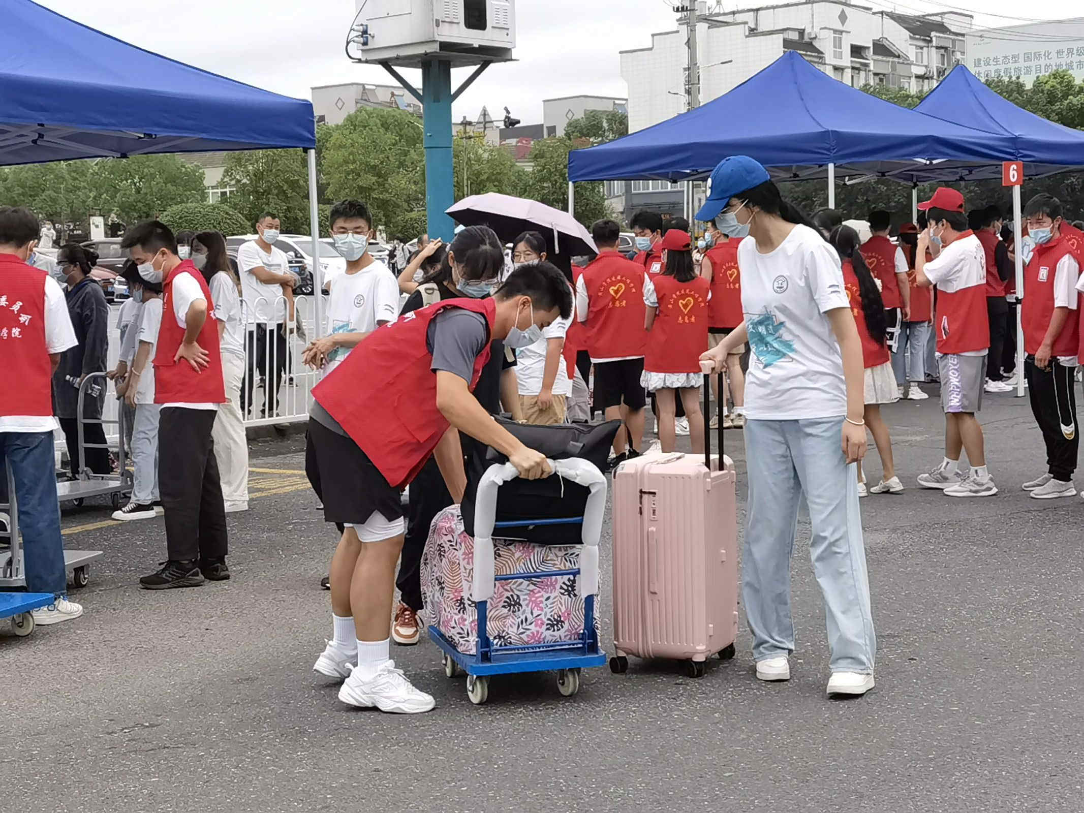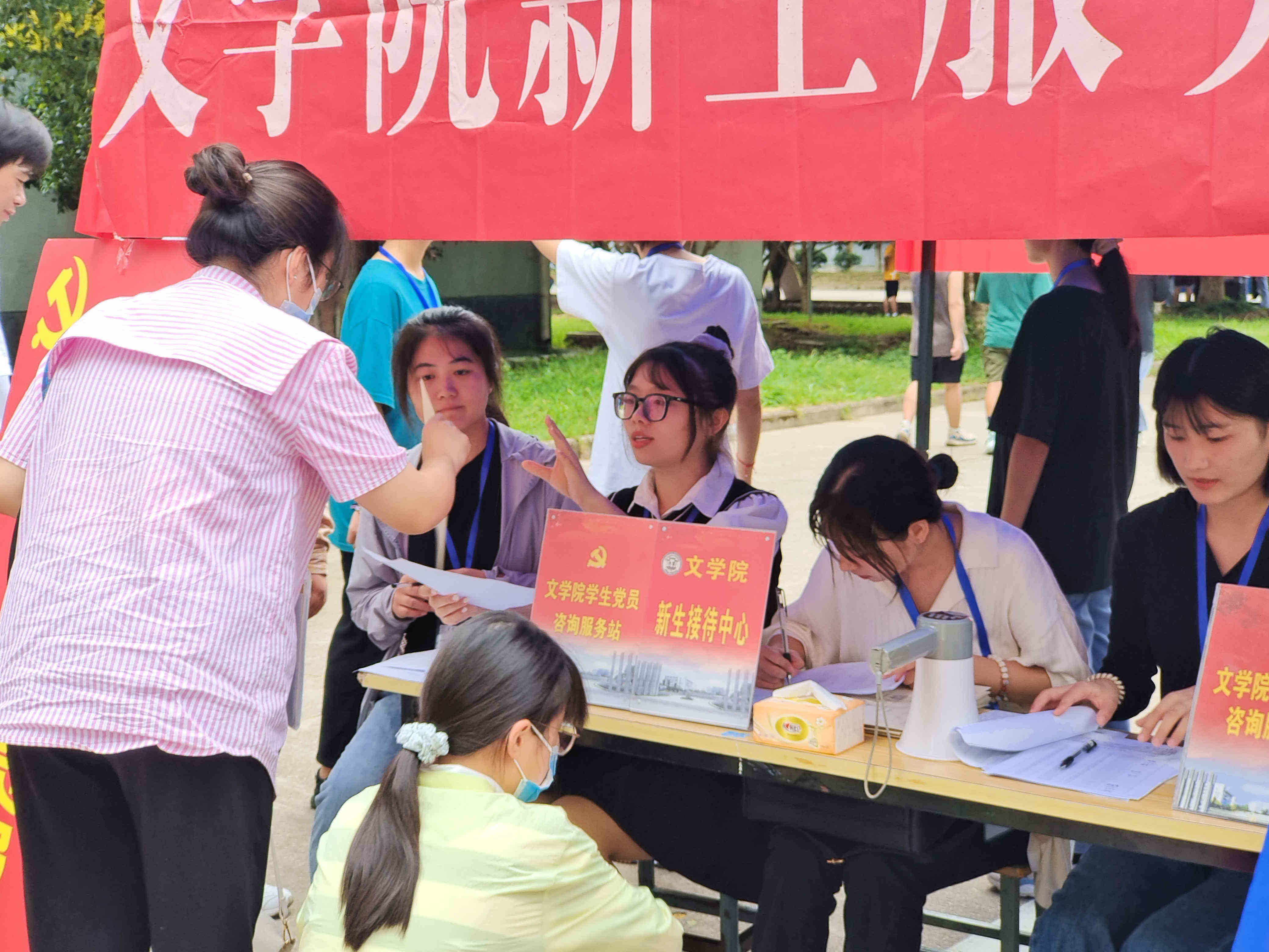 9月4日新生报到当天,学院设立多处新生接待点,组织该院师生党员、学生干部组成迎新志愿服务队,从早上6点到下午6点,志愿者们分工明确,各司其职,热情周到地引导新生办理入学报到手续,耐心解答新生提出的问题,帮助新生搬运行李。