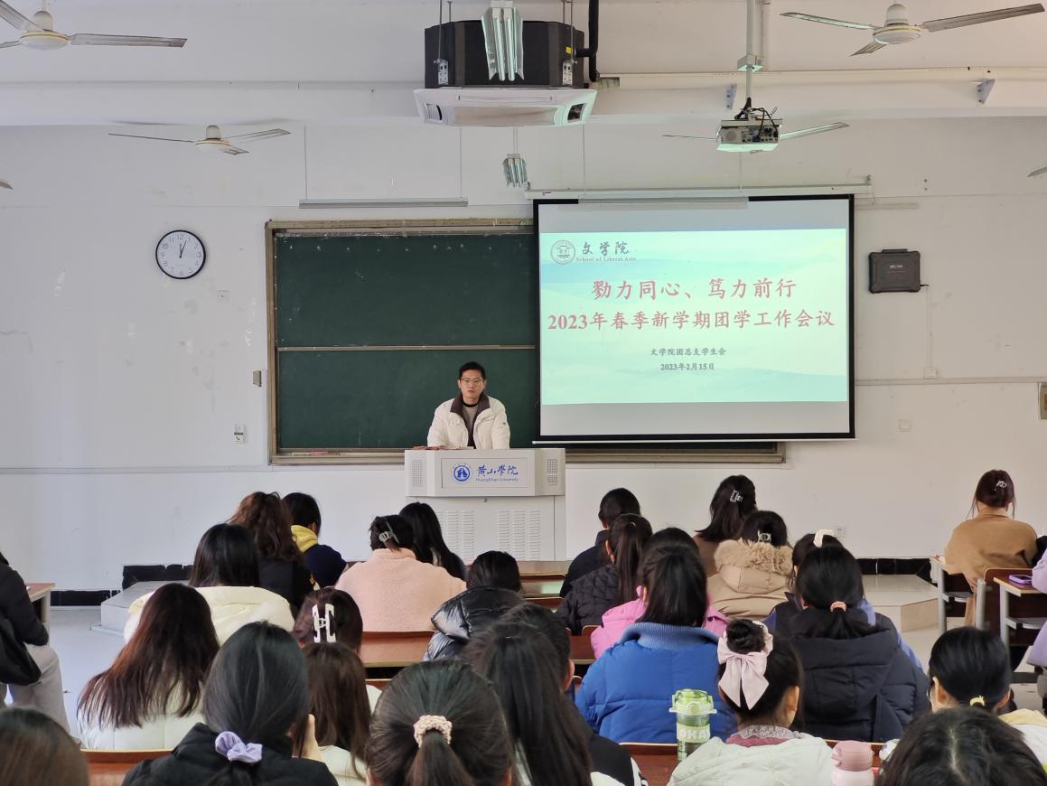 2月15日中午,英国365集团团总支在文端楼2206教室召开新学期第一次团学工作例会。团委老师王星勇主持会议并布置安排本学期各项团学工作,学院团总支学生会全体成员参加。