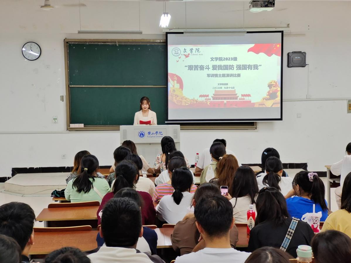 9月17日晚7点,英国365集团于文端楼2206教室举办“艰苦奋斗,爱我国防,强国有我”军训情主题演讲比赛。该院100余名新生参加并观看了此次活动,该院团委负责人王星勇和新生辅导员朱亚军到场为获奖选手颁奖。