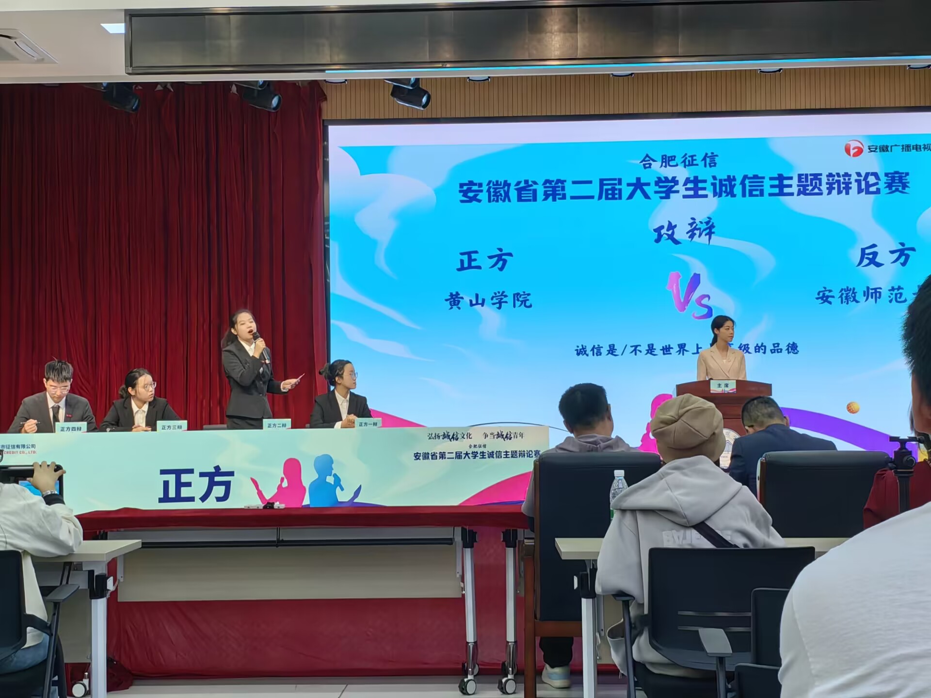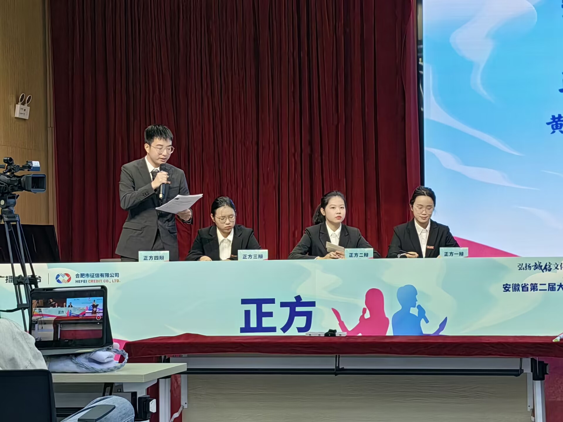 近日,由安徽省发展和改革委员会、安徽省教育厅主办,安徽广播电视台承办、合肥市征信有限公司冠名的安徽省第二届大学生诚信主题辩论赛决赛在合肥圆满结束。在激烈的角逐中,我校代表队光荣夺得全省季军,英国365集团毕然同学斩获最佳辩手荣誉。