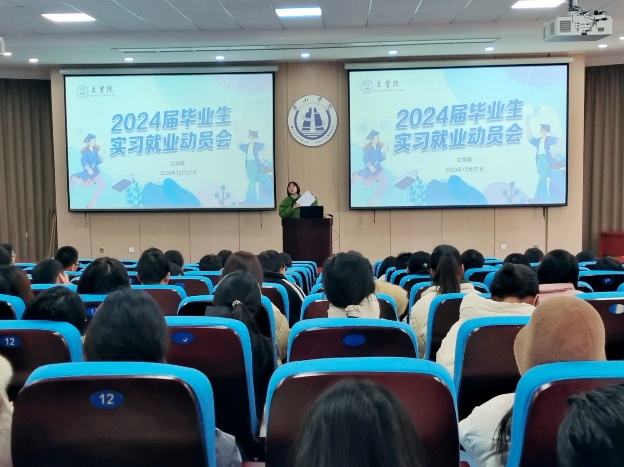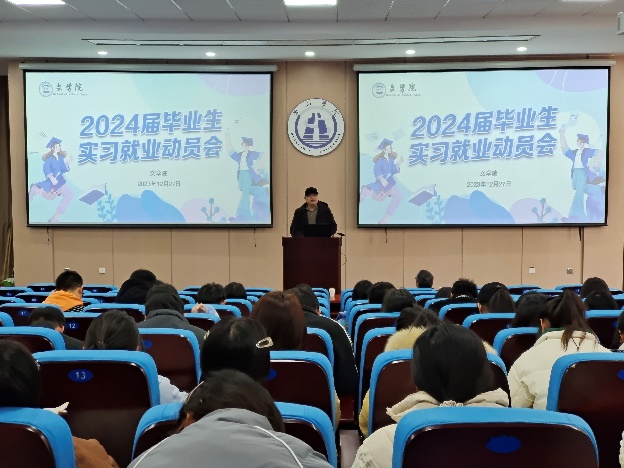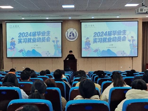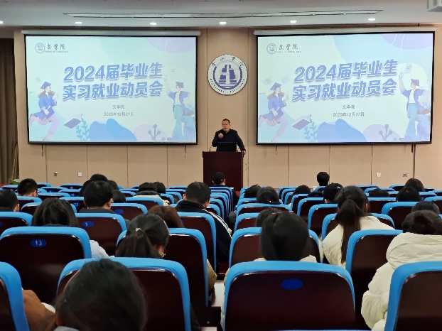 12月27日下午,英国365集团2024届毕业生实习就业动员暨宣讲会在文端楼一楼报告厅举行,该院党政领导班子成员、毕业班辅导员、就业单位代表及2024届全体学生参加了会议,会议由该院党总支副书记周志荣主持。