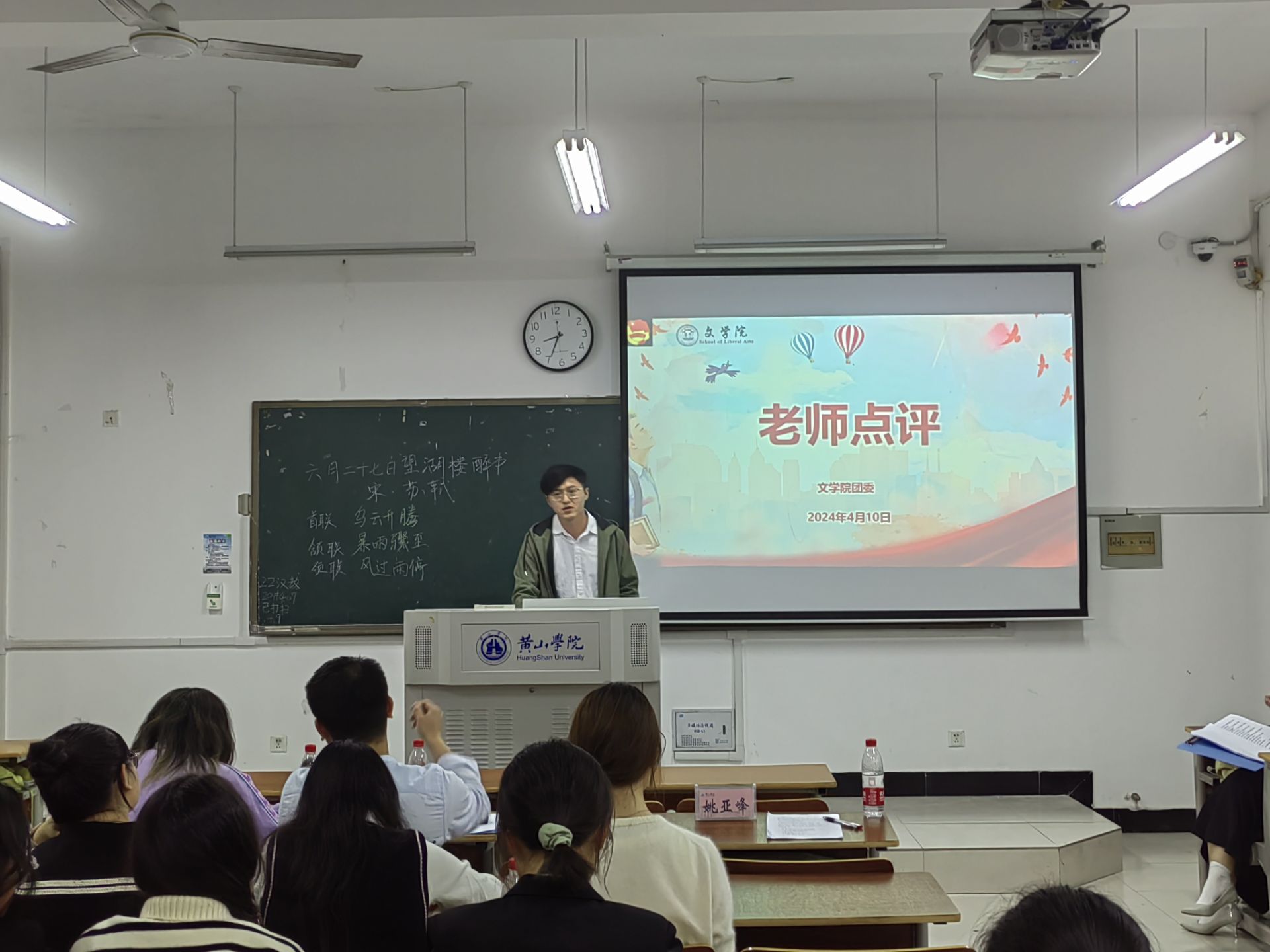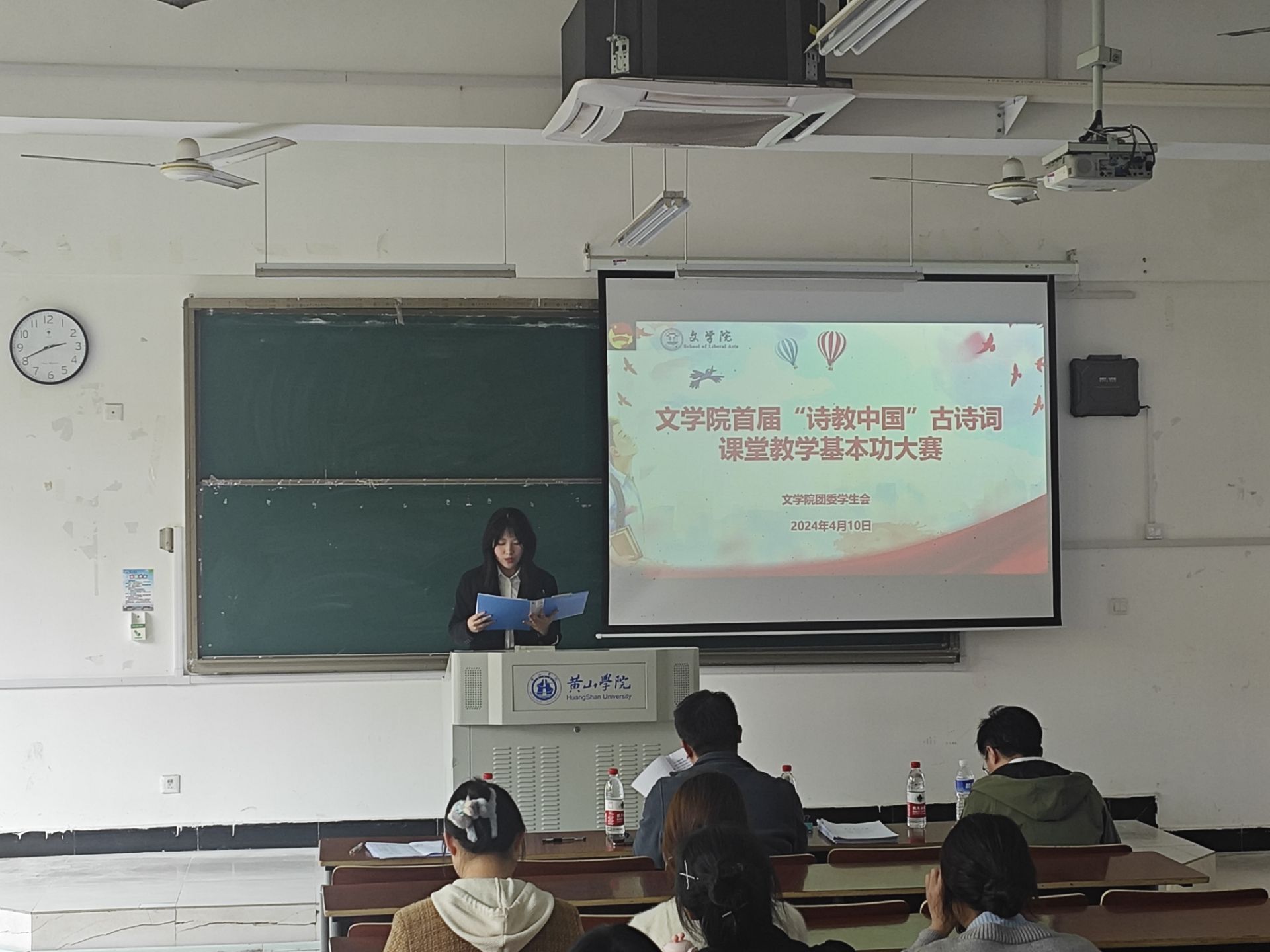 4月10日下午,英国365集团首届“诗教中国”古诗词课堂教学基本功大赛于文端楼2206教室举行。该院工会主席姚亚峰、团委负责人王星勇作为评委应邀出席参加。