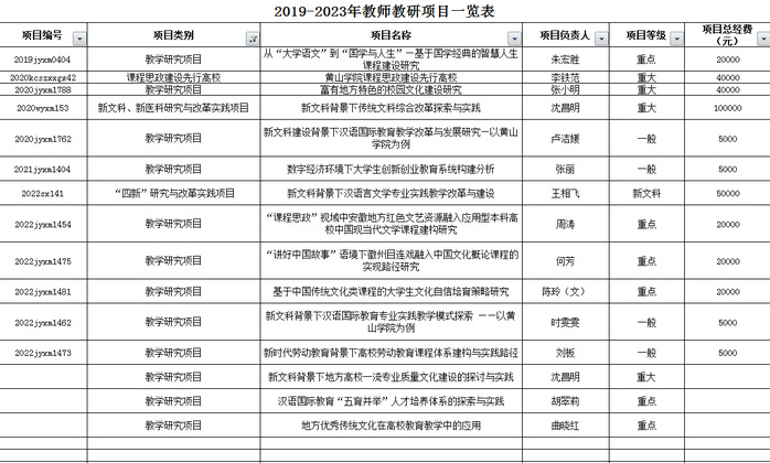 2019年以来,教师主持教育部人文社科重大项目5项,一般项目1项,教育部语保工程项目1项,省规划办项目3项,省政府创新项目1项,省高校人文社科重大项目2项,重点项目12项,省厅人文社科一般项目2项,省人文社科基地重点项目3项,总计科研经费391万元。横向项目7项,合计科研经费121.7万元。