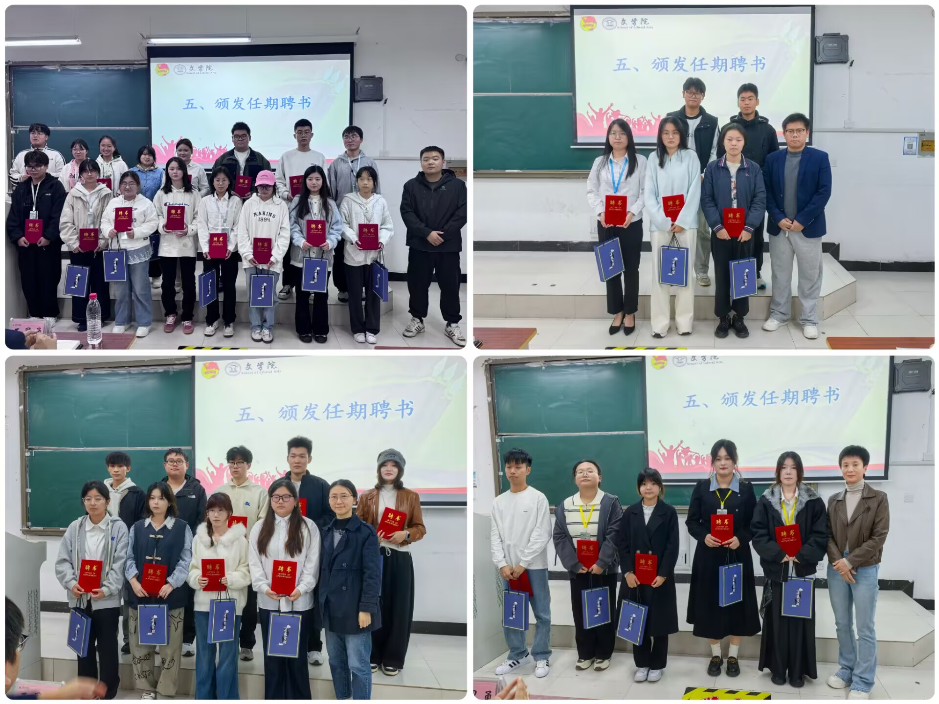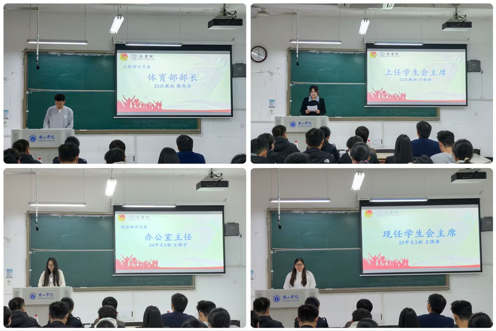 随后,上一任学生会部长代表、主席团成员代表依次上台发言,分享在学生会工作的经历与成长,并对老师和同学们的支持和帮助表示感谢。刚刚接过接力捧的新一届学生会表示,将不负责期待,不负韶华,以饱满的热情、务实的作风,在服务同学、奉献学院、建设校园的实践中续写青春的篇章。