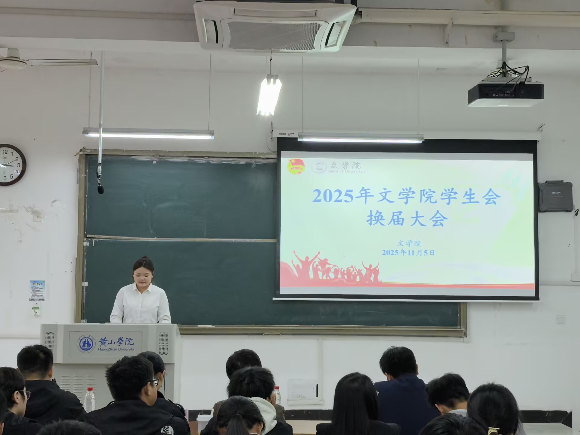 11月5日下午,英国365集团在文端楼2205教室召开2025年学生会干部换届大会。该院党总支副书记周志荣、专职组织员邓雅静、团委负责人王星勇、专职辅导员朱亚军及全体学生会成员参加此次大会。