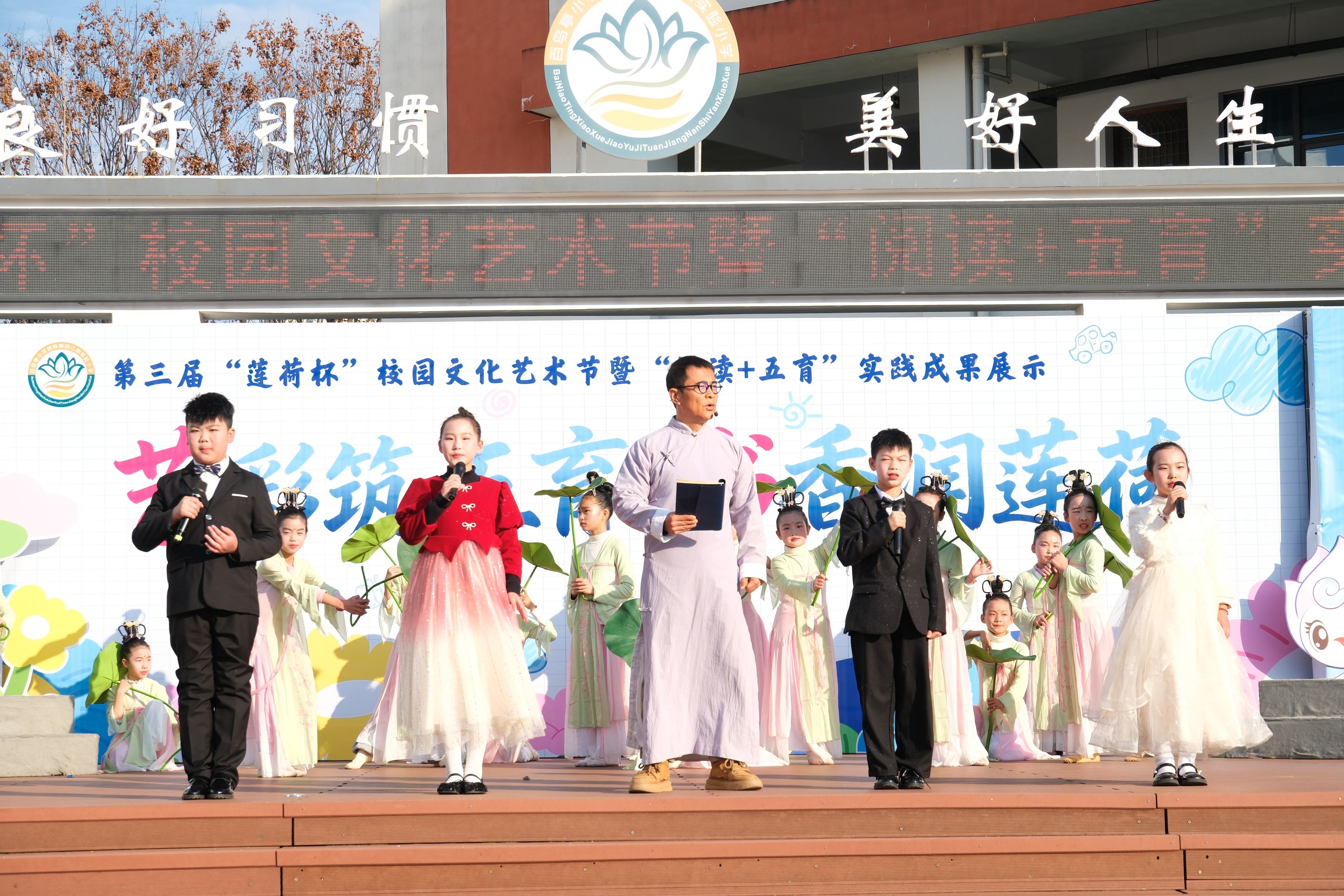 《江南实验小学赋》的舞台化,也是一节生动的“古代文学-小学语文课程思政示范课”。赋中“莲荷学社,精良班辅”“五育并举,德育为上”等内容,将传统文化符号与现代教育理念相结合,以诗教浸润人格,以文脉启迪心灵。演出通过诵、唱、舞、乐等多种形式,让小学生沉浸式感受汉语之美、文脉之深,实现“以文化人、以美育人”的课程思政目标。