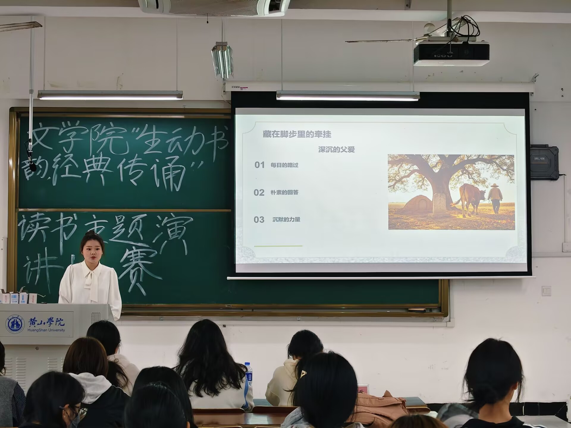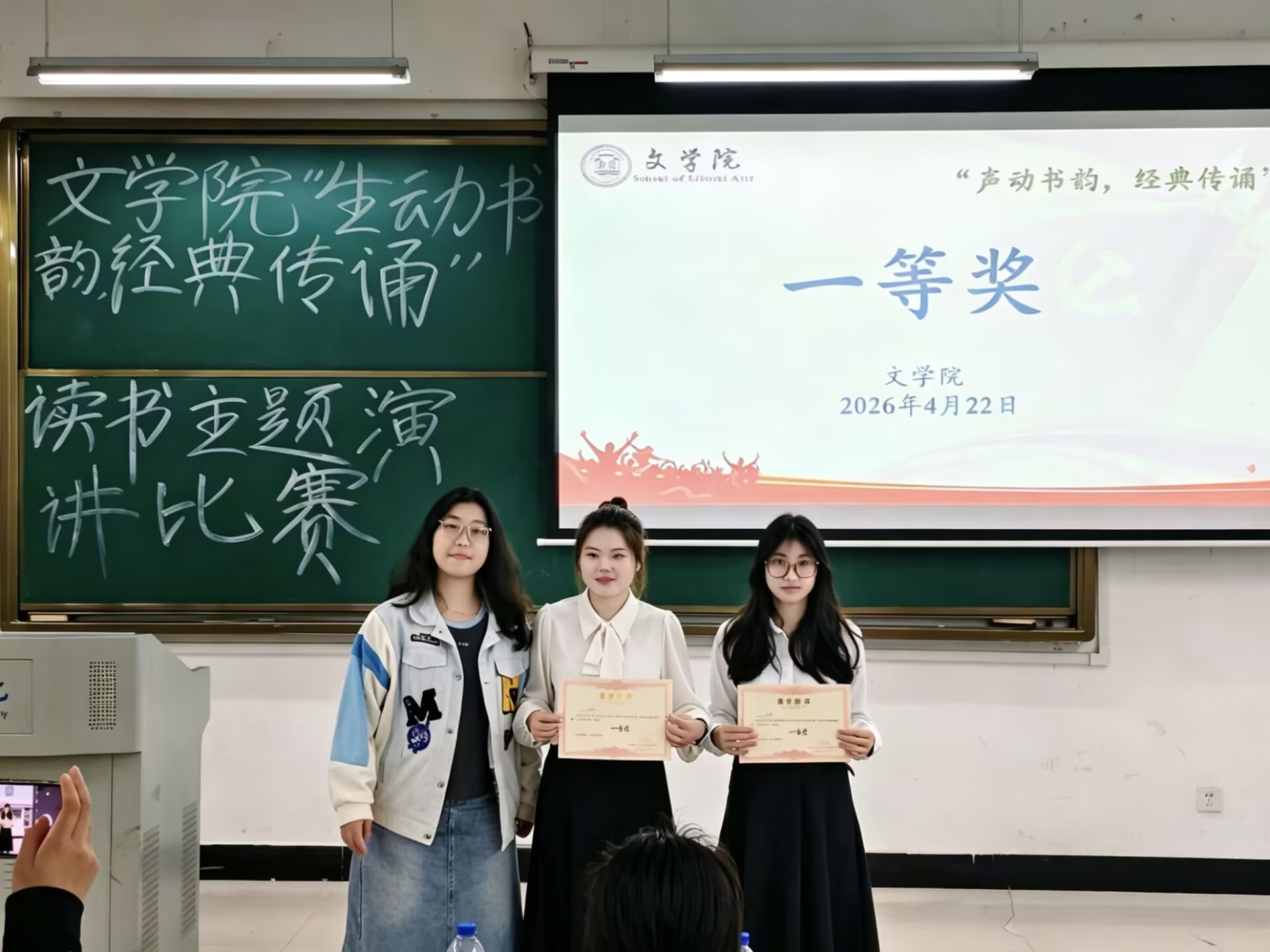 比赛现场,选手们围绕主题,以多样的形式、真挚的情感,将经典文本转化为生动的声音表达。从现当代文学的深刻到外国名著的厚重,选手们用富有感染力的语言,带领观众感受读书力量,展现对经典的独特理解与时代思考。最终经过激烈的比拼,24汉教班谢晨雨同学和25中文1班李尹茜同学获得了一等奖。