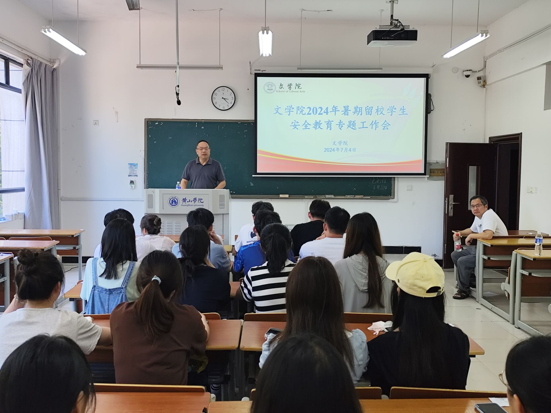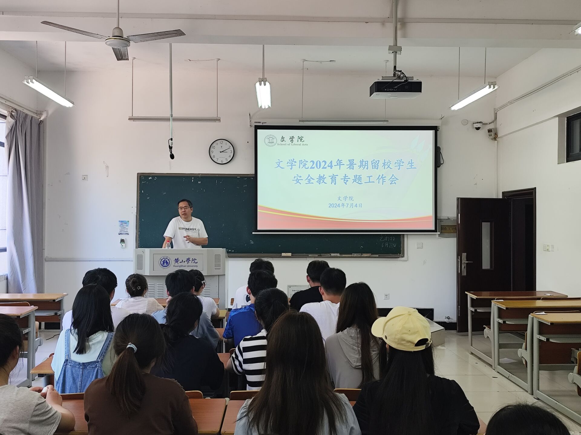 为进一步加强暑期留校学生的安全管理,贯彻落实好学校关于暑期安全工作的相关要求,增强学生的安全意识和自我保护能力,7月4日下午,学院在文端楼2104教室组织开展2024年暑期留校学生安全教育专题工作会。
