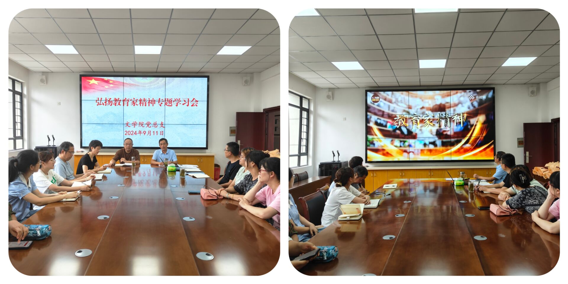为深入贯彻落实习近平总书记关于大力弘扬教育家精神的重要指示,营造学习、弘扬和实践教育家精神的良好氛围,9月11日下午,学院召开了“弘扬教育家精神”专题学习会,集中学习了《中共中央国务院关于弘扬教育家精神加强新时代高素质专业化教师队伍建设的意见》,共同观看了2204年央视纪录片《教育家精神》。