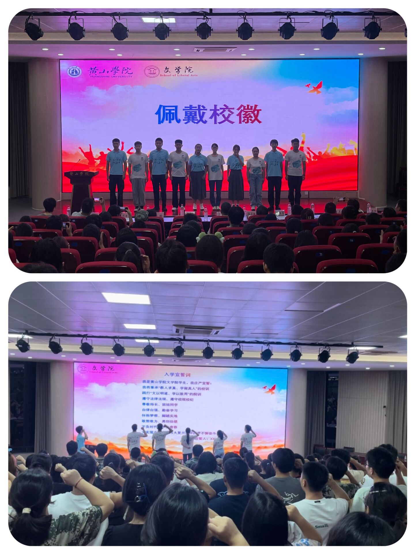 典礼中还安排了签名墙、老生为新生佩戴校徽、全体新生集体宣誓、主持队朗诵表演等,并精心准备了彩蛋,面向全体新生滚动大屏抽取“学习”、“生活”、“心愿书单”、“运动”、“超级锦鲤”五种大礼包,表达对新生的美好祝福和殷切期望。奋笔耕耘结硕果,扬帆起航在今朝。2024级新生开学典礼圆满落幕,祝愿同学们带着学院的温暖与力量,拥抱热爱、追求梦想,共同开启人生新篇章。