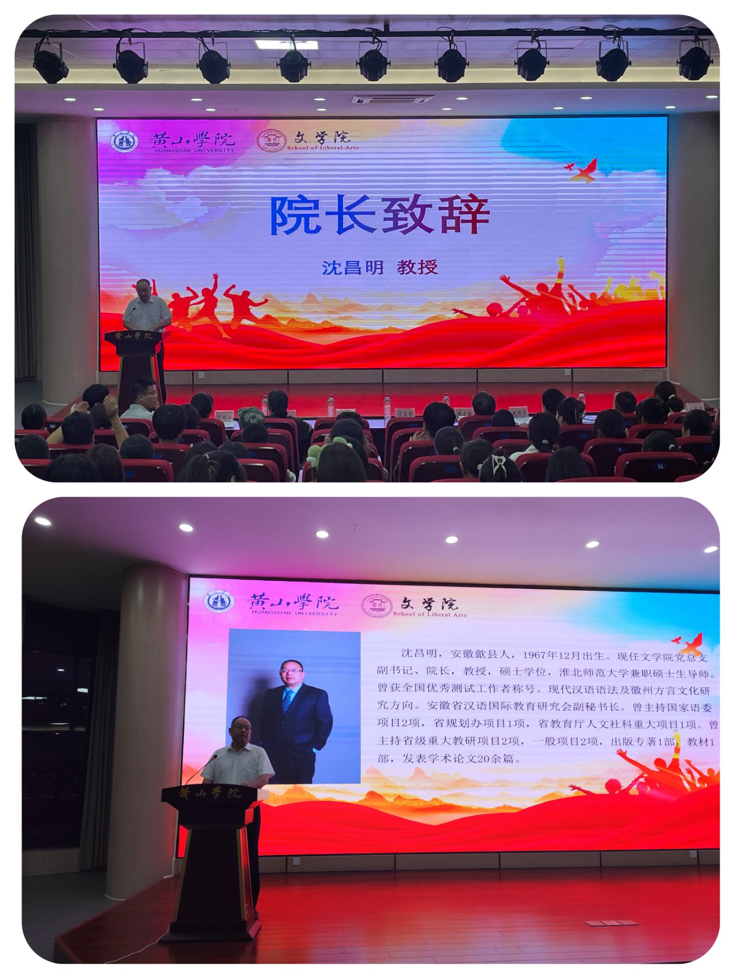院长沈昌明在典礼上致辞,表达了对新生衷心的祝贺和热烈的欢迎,介绍了学院的发展历程、学科建设、师资力量等,随后运用大量的经典名句勉励新生:一要做理想的人,二要做能吃苦的人,三要做能担当的人,四要做肯奋斗的人。