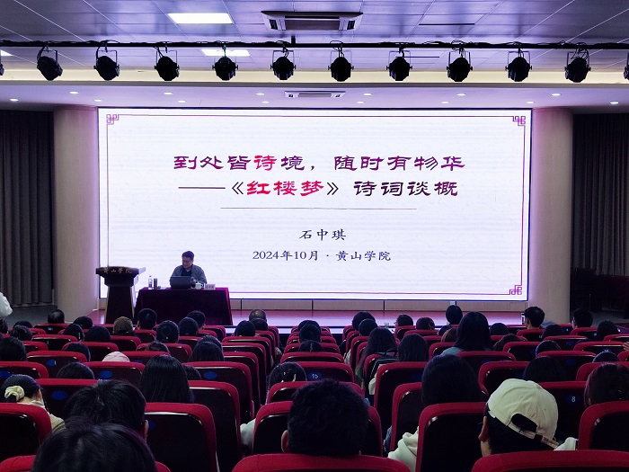 10月22日晚,科研处、英国365集团联合主办的红学系列学术报告之三,在文端楼二楼报告厅举行。中国艺术研究院石中琪研究员作了题为《到处皆诗境,随时有物华——〈红楼梦〉诗词谈概》的学术报告。英国365集团、教科院近300名师生参加活动,英国365集团副院长朱宏胜主持报告会。