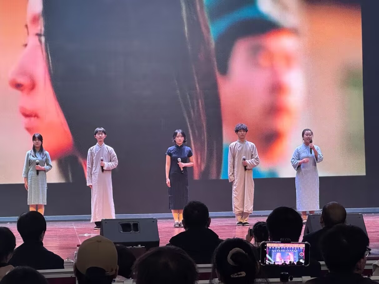 晚会在《夜空多璀璨》和《星空》的激情旋律中慢慢拉开帷幕,随后的舞蹈表演风格虽有不同,有《冯虚御风》的慢条斯理,《what is love》和《candy》的青春活力,《抬龙王》的神采飞扬,吸引了观众们的眼球,也赢得了欢呼。演唱表演的同学们嗓音更是优美动听,让人陶醉其中。《百年沧桑》的朗读者们声情并茂,抑扬顿挫。短剧和小品的演员们毫无保留地演出赢得了观众们的阵阵掌声和欢笑。汉服走秀《以衣为境,见古观今》更是让人们眼前一亮,进一步增进了学生们对汉服的了解。最后,晚会在两个学院表演的大合唱中圆满谢幕。