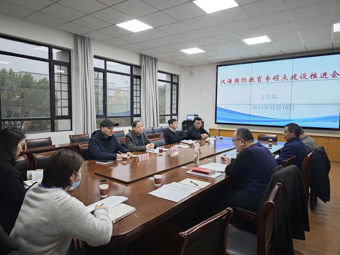 沈昌明对各学院在国际中文教育专业硕士点建设过程中不遗余力地支持表示感谢,接着对照专硕点申请基本条件和简况表填表要求对目前专硕点的整体建设情况进行了详细分析,指出了建设过程中在师资队伍、人才培养、学生学习环境及资源条件等方面存在的不足,希望通过会议共同协商,把脉问诊,建立常态协调合作机制,共同推动建设工作向前发展。