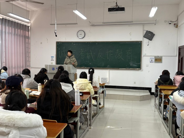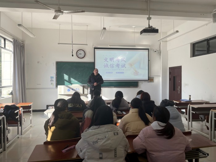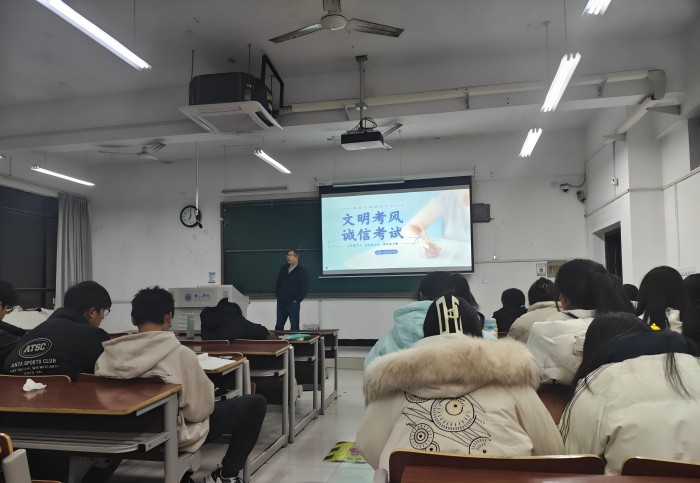 院领导班子成员走进各自联系的班级,与学生面对面交流,强调诚信是大学生必须具备的基本品质,是社会主义核心价值观的要求,也是当今社会的立身之本,考试不仅是对学生知识掌握程度的检验,更是对道德品质的考验。他们还向新生班级重申了学籍管理中有关考试、补考、缓考、重修等规定,并引用真实案例,警示同学们要树立正确的考试观,自觉维护考试的严肃性和公正性,认真复习备考。