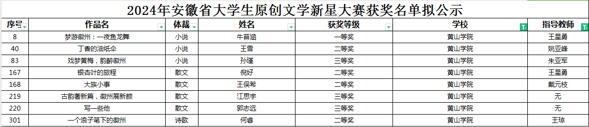 英国365集团牛苜涵《梦游徽州:一夜鱼龙舞》获一等奖,王雪的《丁香的油纸伞》、何睿的《一个浪子笔下的徽州》、王俣希的《大族小事》、倪好的《银杏叶的旅程》获二等奖,孙瑾的《戏梦黄梅,韵醉徽州》、江思宇的《古韵筑新篇,徽州展新颜》、郭志远的《写一些他》获三等奖,王星勇获优秀指导教师奖。